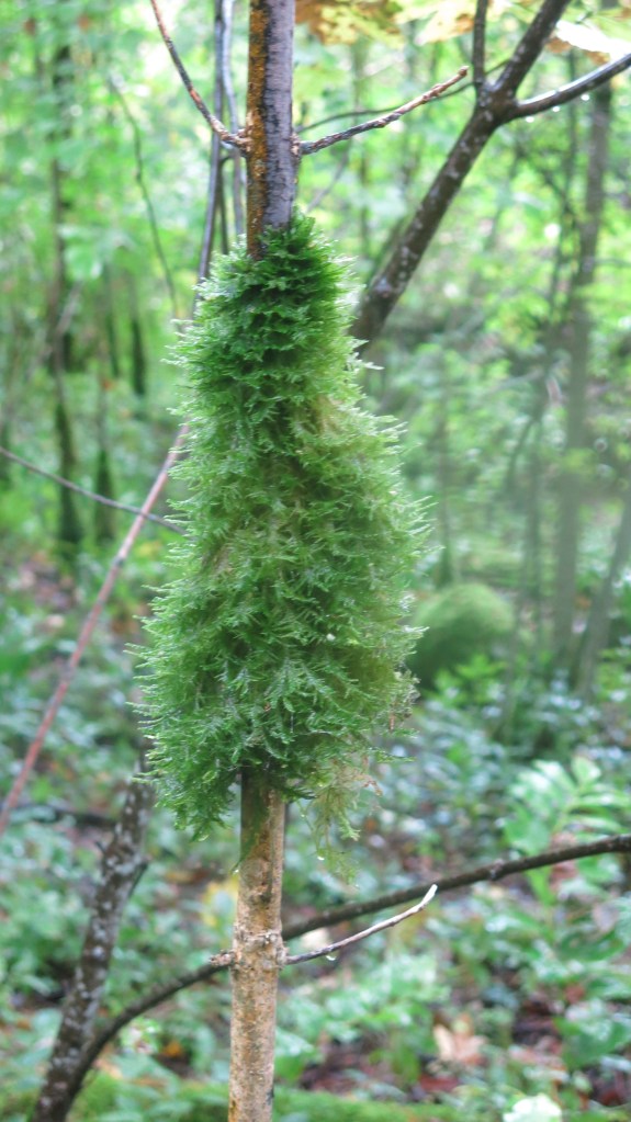 E.: Der heutige Weg ist viel abwechslungsreicher als gestern. Schmale Pfade, moosbesetzte Bäume – es ist wie im Elfenland.