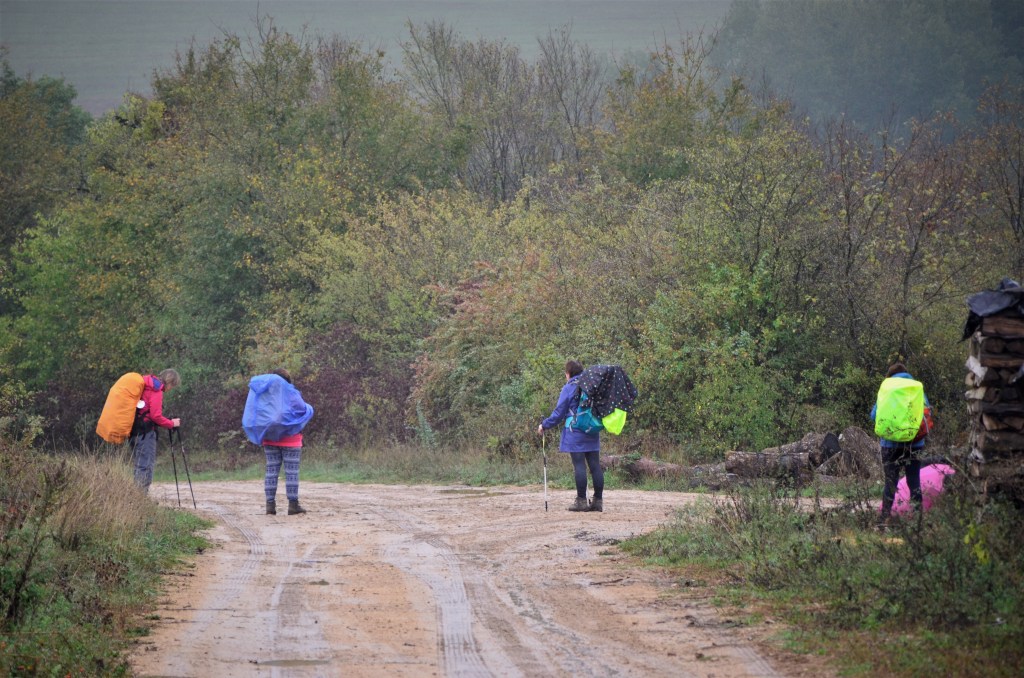 Ich schaue ins Tal und sehe den Höhenzug in der Ferne. Da müssen wir heute noch rauf, denke ich. Ich werde das nicht erwähnen. Blue Monday am dritten oder vierten Tag ist schon Ballast genug, wer will da noch mit Höhenprofilen konfrontiert werden. Wenn nur der Regen mal eine Pause einlegen würde. Warum laufe ich eigentlich hier herum? Noch über tausend Kilometer bis Compostela. Ich könnte jetzt einen heißen Tee gebrauchen. Wer will schon Pause machen im nassen Nirgendwo? ‚Sie laufen durch weitestgehend menschenleere Landschaften‘, sagt das Pilgerbuch. Ja klar, bergauf an einem Montag.