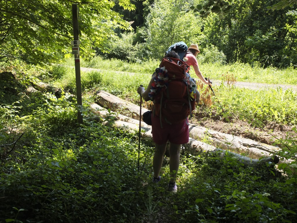 Pilgern ist nicht Spanien und der Jakobsweg ist überall. In Frankreich mussten wir uns entscheiden, den schönen, aber schweren Weg zu nehmen. Schwer bedeutet in diesem Fall viele Aufstiege und wenig Beschilderung, dafür aber landschaftlich reizvoll. Oder wir hätten den leichten, aber weniger schönen Weg nehmen können, flaches Gelände, aber oft entlang einer Straße. Wir entschieden uns für den Weg durch die wilde Natur, die manchmal schon einer Wildnis gleichkam.