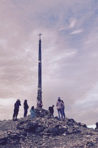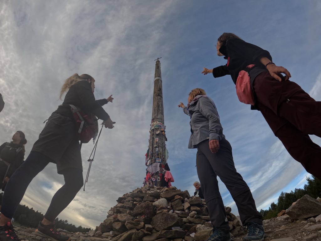 Dieser Brauch wurde von den Pilgern übernommen, sie legen mit ihrem Stein ihr Leid, ihre Sünden und alles, was sie bisher an Ballast in ihrem Herzen getragen haben, ab. Viele bunte Steine haben sich angesammelt, beschriftet mit Namen und Daten. Fotos stecken am Pfahl und zwischen den Steinen, auch wir legen unsere Steine ab. Ich sehe eine junge Frau, die aus einem kleinen Gefäß Asche auf ihren Stein schüttet und traurig, aber befreit lächelt. Sie zeigt auf das Foto einer älteren Frau. Ich vermute, es ist ihre Mutter und lächle zurück. Hier braucht es keine Worte.