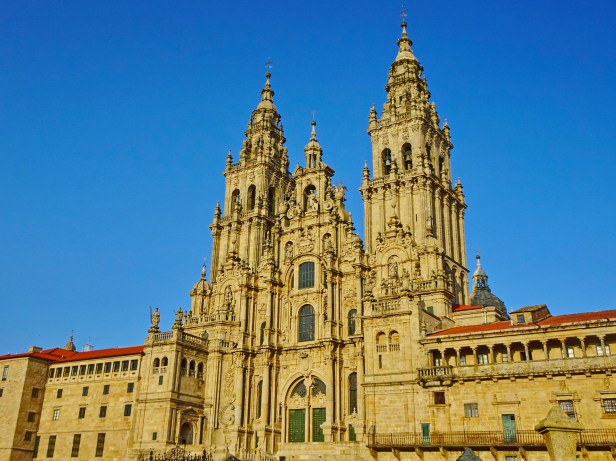 Wenig später beginnen diese Beine mit dem Abstieg in die Stadt. Wir kommen der Kathedrale immer näher. Leute in den Straßen, die die Pilgerinnen in uns erkennen, klatschen und rufen „Congratulations“ und „You made it!“ – Ihr habt’s geschafft. Es geht durch Gassen und um Ecken, es ist einiges los in den Straßen. Es trifft uns beinahe unvorbereitet, als hinter der letzten Ecke die Kathedrale auftaucht.