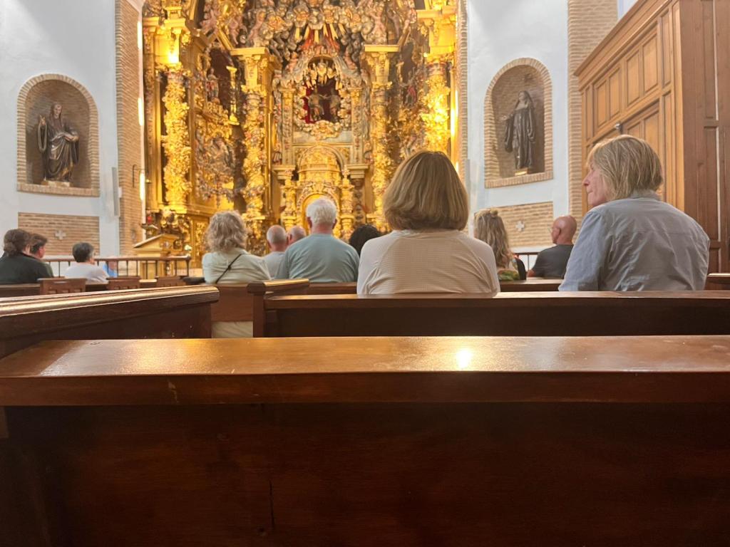 Anschließend führt er uns auf unsere Zimmer. Diese sind sehr einfach und mir geht durch den Kopf, wie viele Brüder hier wohl schon genächtigt haben. Alles sehr geschichtsträchtig. Derzeit leben im Kloster noch 8 Nonnen. Uns bleibt wenig Zeit, in weiteren Gedanken zu schwelgen. Gleich beginnt die Messe. Die klostereigene Kirche ist wahrlich beeindruckend. Etwas gemein ist wohl, dass weite Teile der Messe im Stehen stattfinden und wir häufig zwischen Sitzen und Stehen wechseln. Ehrlich gesagt, beobachte ich in dem Moment, wie sich auch die anderen Mitpilger mühevoll erheben.