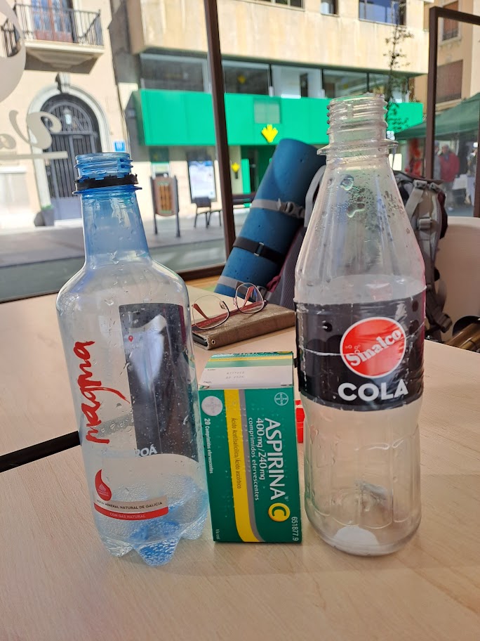 In Villavante ist die Albergue schlecht, zumindest nach meinem Eindruck. Noch vor der Unterkunft riecht es nach Pommesfett. Direkt am Eingang liegt unser Zimmer, Zimmer Nr. 1. Die Menschen sind zwar nett hier, aber die Holztüre ist dünn, das Zimmer sehr einfach und hellhörig. Direkt daneben ist die Rezeption mit einer Klingel, die ständig jemand betätigt. Auf dem Flur läuft ein unbetreutes, in etwa dreijähriges Kind herum, das immer mal wieder auf sich aufmerksam macht. Das wünscht sich niemand. Hilt alles nichts, Ich muss sofort ins Bett. Die Nacht macht wirklich keinen Spaß. Mir ist heiß, ich habe Durst. Am nächsten Morgen beschließe ich, diesen Ort zu verlassen, sofort. Hier kann ich nicht bleiben. Also trenne ich mich von Dingen, die mir zu schwer sind, um sie zu tragen. U.a. von meiner heiß geliebten roten Thermoskanne, die mich bereits über tausende von Kilometern begleitet hat- Zurücklassdinge eben.
