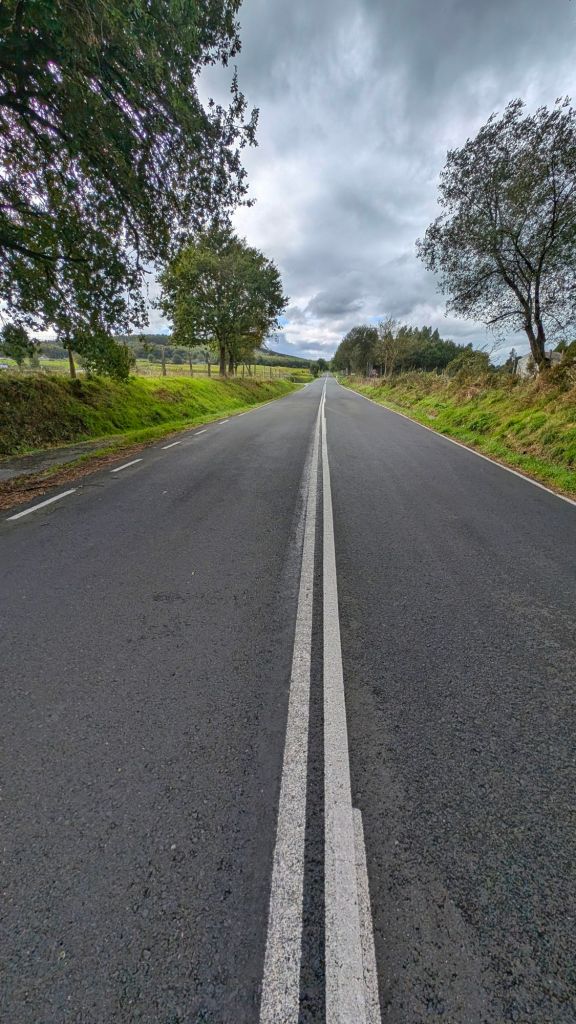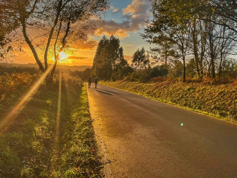An einer Vending Machine treffen wir auf die anderen und lassen uns zu einer ausgiebigen Pause nieder. Ich beobachte zwei junge Männer, die offensichtlich Deutsch sprechen. Chora, die schon vor uns an der Vending Machine war, hat schon erfahren, dass es ihr erster Lauftag ist und sie in Lugo gestartet sind. „In Deutschland sind Herbstferien, wahrscheinlich suchen sie hier etwas Abenteuer abseits vom Tourismus“, vermute ich. Chora meint, es seien Vater und Sohn. „Niemals, guck mal, die sind doch beide noch mega jung. Das sind Geschwister“, behaupte ich. Ich beschließe, es herauszufinden und schlendere betont lässig hinüber. „Na, wie läufts denn so?“, frage ich beiläufig, während ich ansetze, meine Tasse zu spülen. Der Wasserhahn gibt jedoch kein Wasser her und einer der beiden verweist mich auf den funktionierenden Wasserhahn in der angrenzenden Toilette.