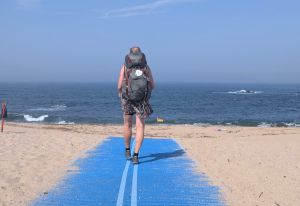 Die Rucksäcke sind schnell gepackt. Auf Anregung von Paula haben wir noch extra viel Wasser eingepackt, denn es soll ja unerträglich heiß werden. Wir verlassen wehmütig das schöne Haus und laufen los. Nach ein paar Metern mit dem Rucksack auf dem Rücken gleitet mein Körper in den Pilgermodus. Ich merke, wie mein Schritt den bekannten Rhythmus aufnimmt. Heute sind 15 Kilometer zum Eingrooven geplant. Fleur muss ihren Rucksack noch feinjustieren. Erfahrungsgemäß dauert es ein paar Tage, bis alles richtig sitzt. Es geht über Kopfsteinpflaster, durch enge Gassen, bis zur Küste. Ich rieche das Meer.