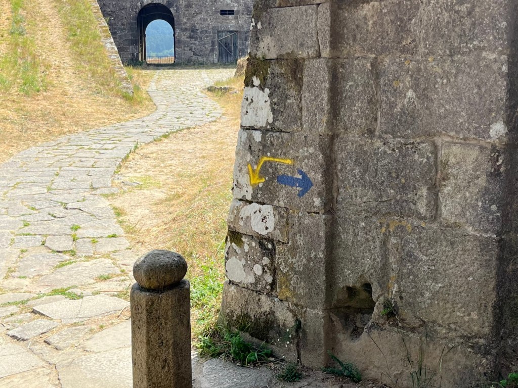Lange halten wir uns in Tui nicht auf, es verspricht, ein heißer Tag zu werden. Unser Ziel ist O Porriño und liegt noch 20 Kilometer landeinwärts. Jenseits der Stadt entern wir ein Waldgebiet, das die Hitze noch etwas von uns fern hält. Die Freude darüber währt nicht lange. Hinter dem Wald lauert der Asphalt. Asphalt ist der Feind des Pilgerfusses. Die wenigen Blasen, die ich mir in meinen langen Pilgerjahren eingehandelt habe, waren meistens die Folge eines sehr langen Asphalttretens. Das ist nichts für den menschlichen Fuß. Heute lerne ich den Asphalt noch von einer ganz anderen Seite kennen. Es beginnt mit einer fatalen Fehlentscheidung. Auf der Karte zeigt sich eine Abzweigung des Pilgerweges nach links mit vielen Windungen durch ein Waldgebiet oder eine gerade Strecke, die ohne Umwege nach O Porriño führt.