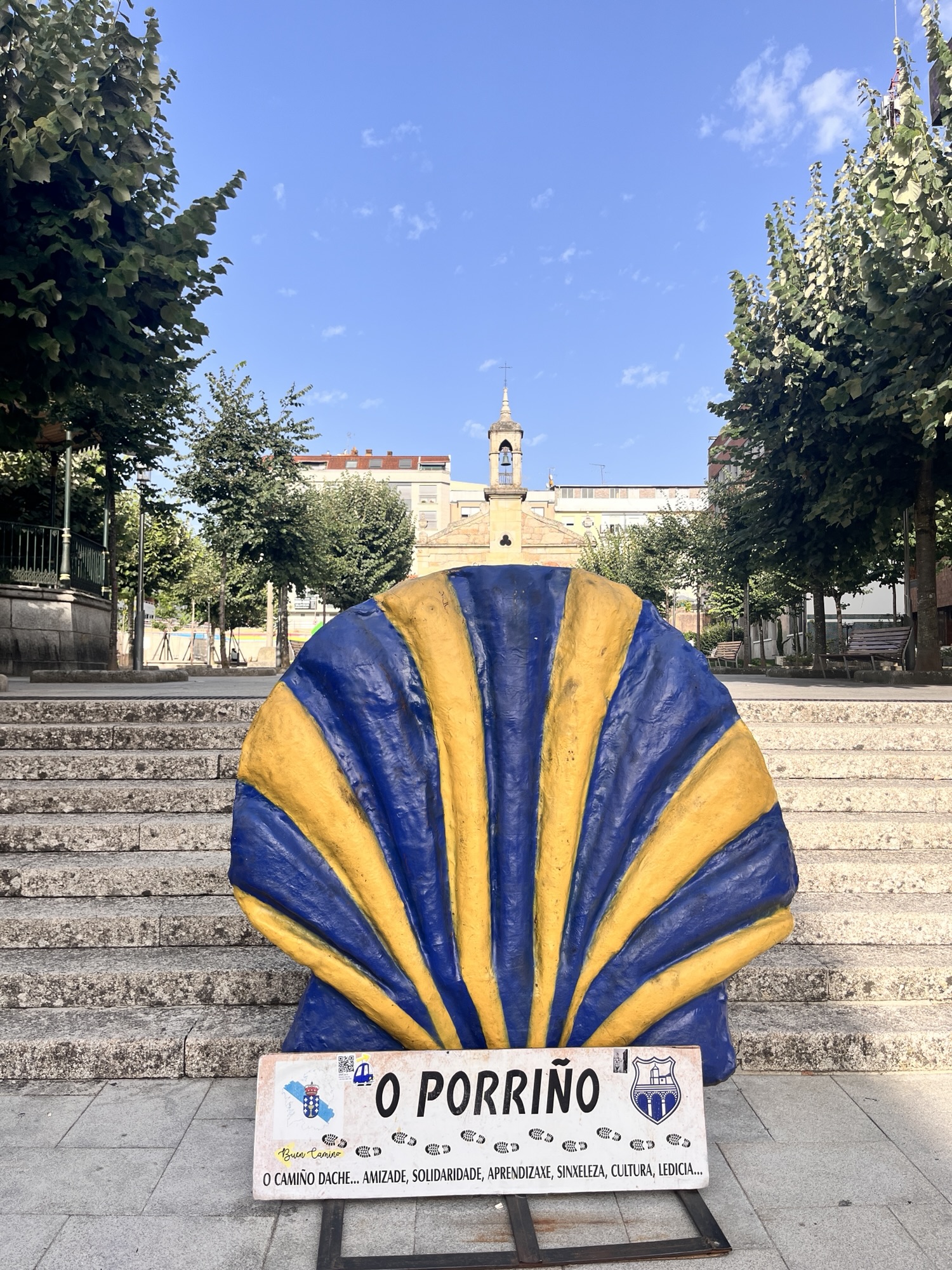 Frühstück in Valença, im Schatten der Kirche. Der Tag fängt gut an. Wir sind umgeben von Souvenirläden. Die letze Gelegenheit, noch ein paar portugiesische Kostbarkeiten einzukaufen. Der schon bekannte Hahn ziert viele der angebotenen Waren. Das ein oder andere passt noch in den Rucksack, an den Finger, um das Handgelenk oder auf den Kopf. Wehmütig lausche ich den Klängen der portugiesischen Sprache in den Gassen. Es ist nur noch eine Brücke, die uns von Spanien trennt.