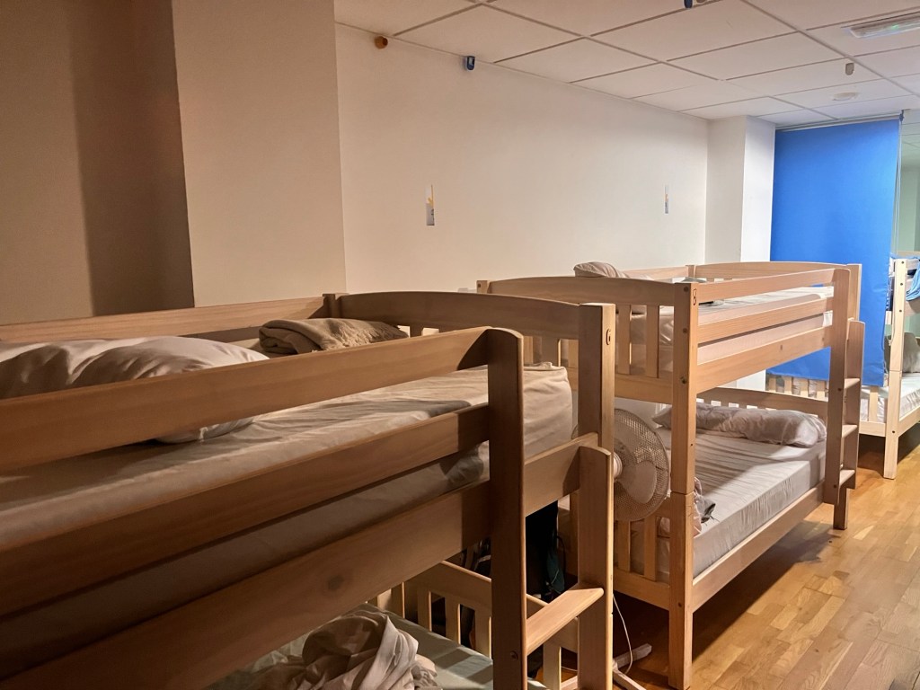 Danach geht es mit neuem Elan weiter. Die Albergue, die wir uns für heute ausgesucht haben, liegt im zweiten Stockwerk eines Restaurants. Im dritten Stockwerk befinden sich Rezeption und Duschen. Im zweiten Stockwerk der Schlafsaal. Das verwirrt nicht nur mich.