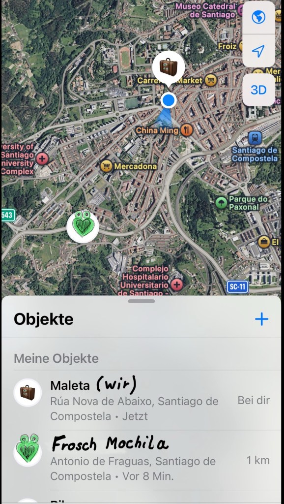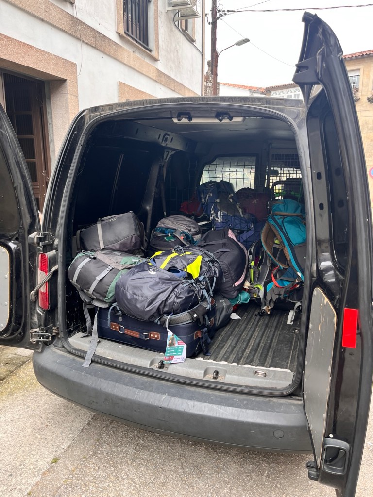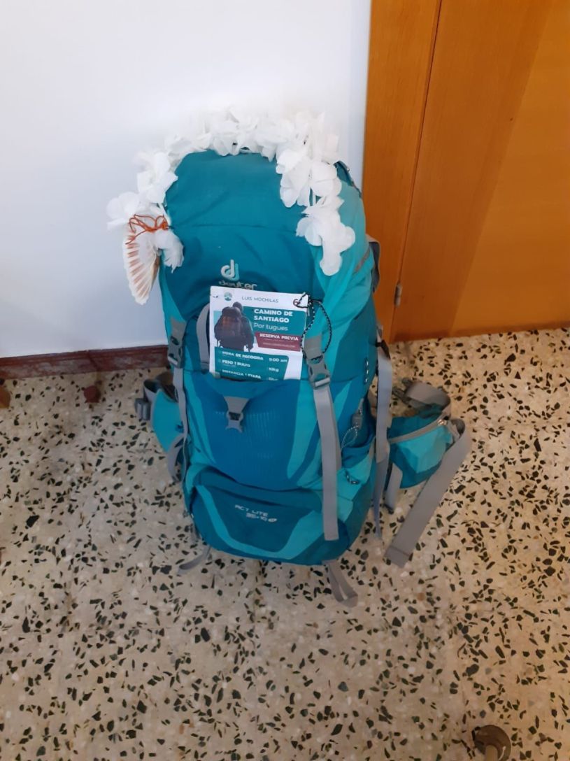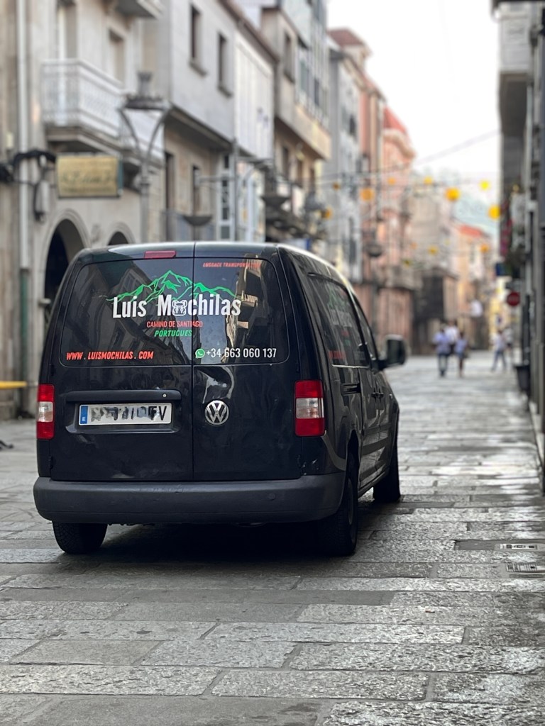 Ich habe einen neuen Freund : Luis Mochila – der Mann, der fast jeden Morgen den Rucksack abholt. Ich habe mich entschieden die neue Hüfte zu entlasten. Gott sei Dank gibt es den Mochila Express. Morgens, wenn wir loslaufen, stelle ich mein,, Hab und Gut“ gut sichtbar an der Herberge ab. Dank des Trackers von Fìjula bin ich etwas weniger in Sorge, das wir uns nie wiedersehen.,, Bis heute Abend, mein Schatz „.