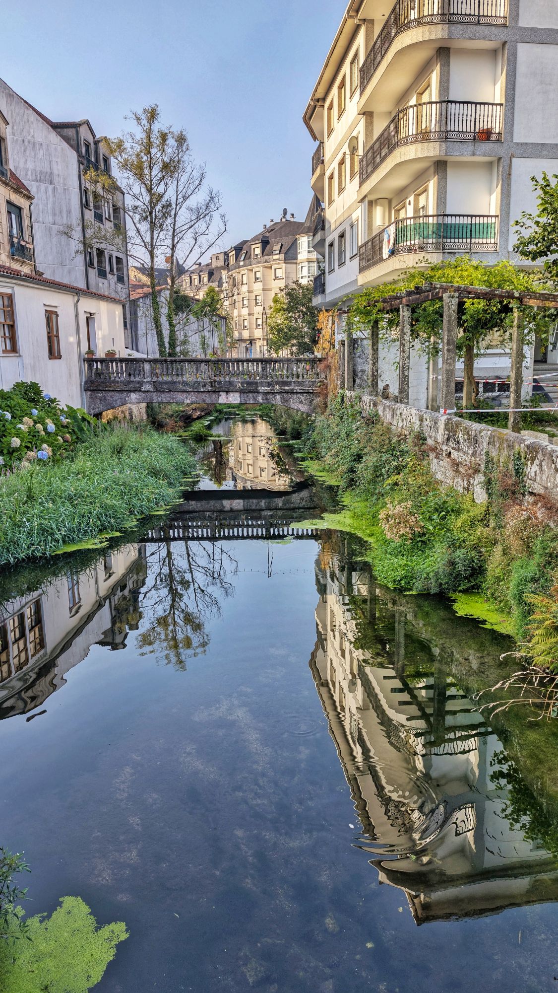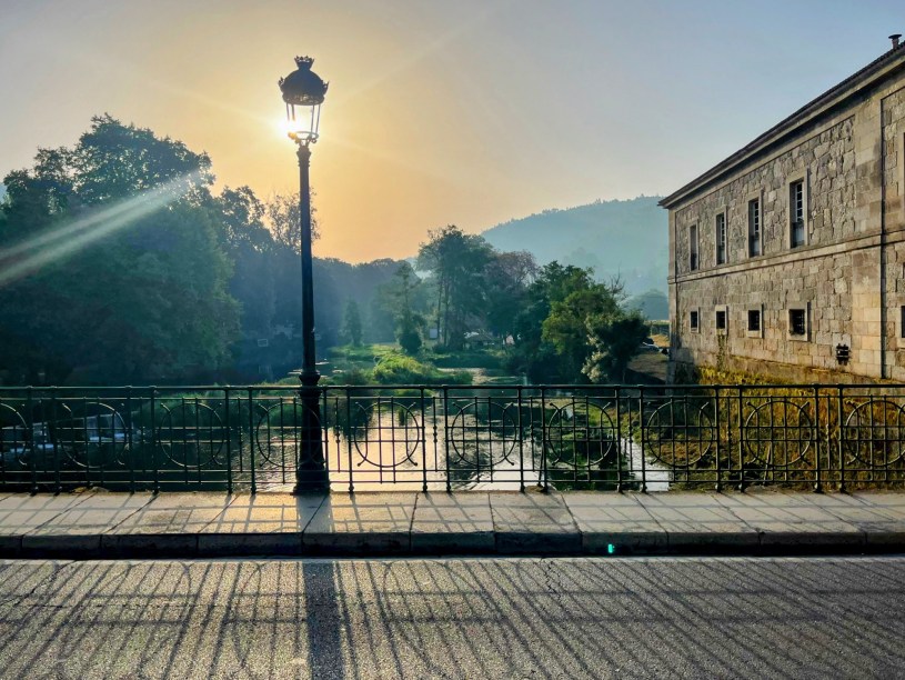 Am nächsten Morgen bedeutet diese Abgeschiedenheit, dass wir erst einmal laufen müssen, bevor es Frühstück gibt. Es ist ein schöner Weg entlang der Weinberge. Hinter mir höre ich, wie Froggy ihre nicht unbeträchtliche Anzahl an Mückenstichen zählt. Nach einer Stunde erreichen wir Caldas de Reis, den Ort, der das eigentliche Etappenziel gewesen wäre.